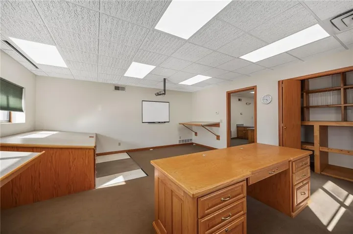 Constructed with a steel building frame and metal exterior walls, the property is equipped with nine (9) 12’ x 14’ drive-in doors, with eight along the south elevation and one on the west, allowing for efficient loading and operational access. The site features a paved parking area and is partially enclosed with a chain-link fence topped with three-strand security wire for added security.