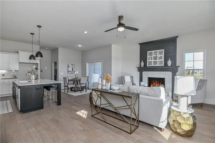 Move-in Ready Maintenance Provided Ranch Villa! This stunning home features an open floor plan with 10’ ceilings, hardwood floors, and a light-filled living room with stone fireplace. The gourmet kitchen includes stainless steel appliances, custom cabinetry, under-cabinet lighting, and a walk-in pantry, plus a main-level mudroom and built-in desk area. The primary suite offers a walk-in closet and beautifully tiled bath. The lower level adds a spacious rec room with dry bar, two additional bedrooms, and a full bath—totaling four bedrooms. Lawn care, snow removal, and exterior maintenance (including roof) are all included